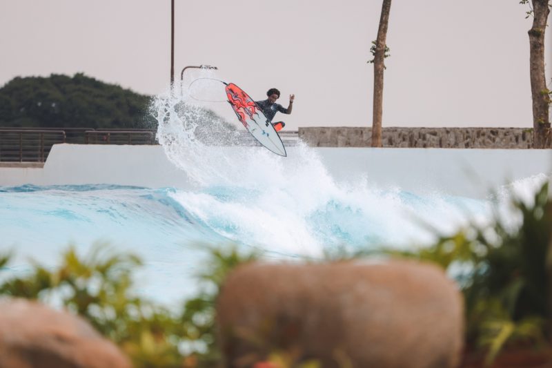 Nineteen year old Mateus Herdy (ambassador of the Wavegarden Cove now under construction in Garopaba, Surfland Brazil) enjoys an evening session at URBNSURF Melbourne.