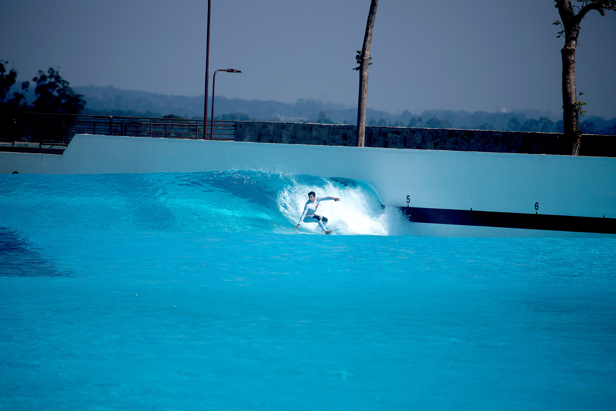 The Turns 2 is a mid-size wave, standing approximately head-high at take-off. It is suitable for shortboarders and others to practice vertical re-entries, off-the-top turns, carves, and cutbacks. It is faster than the Turns 1 wave and has a powerful section at the end that allows for a solid turn, aerial or small tube ride.